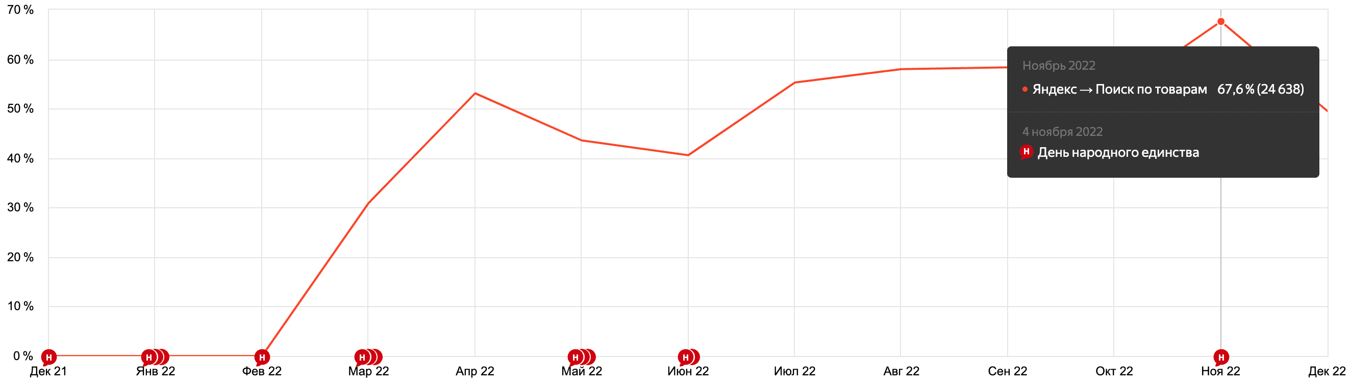 • Увеличение трафика на 70%: Бесплатный трафик с Яндекс Товаров привел к заметному росту посетителей сайта.